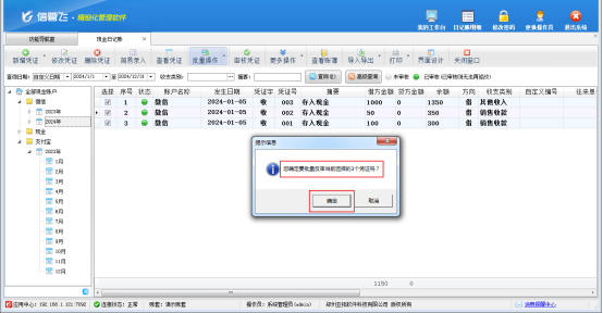 信管飛出納記賬軟件是一款集現金/銀行日記賬、應收應付款管理、工資管理、發票管理等為一體的綜合性財務出納管理軟件,軟件默認日記賬憑證審核后,不允許直接修改,有用戶在審核之后需要修改憑證,已審核狀態下無法進行修改,需要先反審憑證才能修改,如果需要修改的憑證過多,一個一個進行反審比較麻煩,為了提高效率,軟件內支持批量反審憑證,本文以“信管飛出納記賬軟件”為例進行示范。