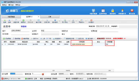 信管飛送貨單軟件在新開送貨單時支持在送貨單界面直接查看引用訂單數量,本篇文章介紹一下操作方法。