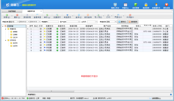 以銷售單列表為例,進入銷售單列表界面,可以看到單據(jù)明細欄并未顯示出來,如圖: