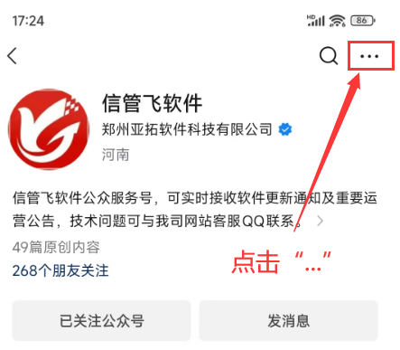 打開“信管飛軟件”公眾號,然后在右上角找到“半身像”名片標識,如下圖: