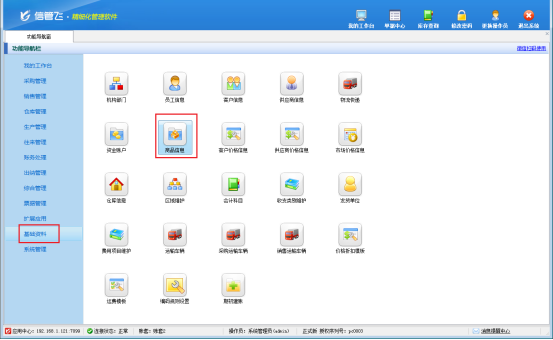 在功能導(dǎo)航窗中點擊“基礎(chǔ)資料”—》“商品信息”,即可進入“商品信息”界面,如圖: