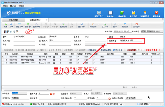 信管飛RMS支持開銷售單界面選擇發票類型,可以根據實際需要選擇不同的開發票方式,如下圖所示。