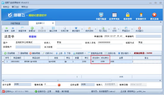 檢查折扣率,折扣率等于100時,單價=折扣單價,金額=單價*數量;折扣率不等于100時,金額=折扣單價*數量。