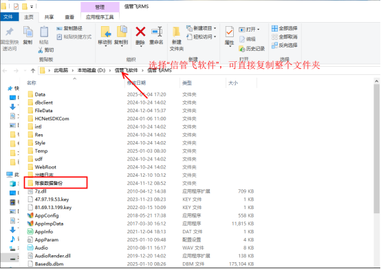 選擇桌面圖標(biāo),點(diǎn)擊鼠標(biāo)右鍵選擇“打開文本位置”,可打開文件保存位置,選擇“信管飛軟件”文件夾,復(fù)制整個(gè)文件夾到新電腦上,如果文件過大,可把“賬套備份文件”中的之前日期數(shù)據(jù)刪除。如下圖所示: