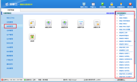 操作員權(quán)限設(shè)置完成后,使用操作員“張亞”登錄軟件,此時(shí)銷售管理右側(cè)相關(guān)查詢統(tǒng)計(jì)已無法進(jìn)行銷售毛利查詢,如下圖所示。