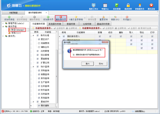 當員工“張亞”離職后,為了避免其賬號繼續出現在登錄界面,造成管理混亂,我們可以通過簡單的操作將其刪除。使用“系統管理員”賬號登錄軟件,在功能導航窗中點擊“系統管理-操作員及授權”,進入操作員及授權界面。在該界面中,選中操作員“張亞”,點擊工具欄中的“刪除操作員”按鈕。操作完成后,客戶端登錄界面的操作員列表中就不會再顯示員工“張亞”的名字,讓登錄界面更加清爽整潔,管理更加高效。