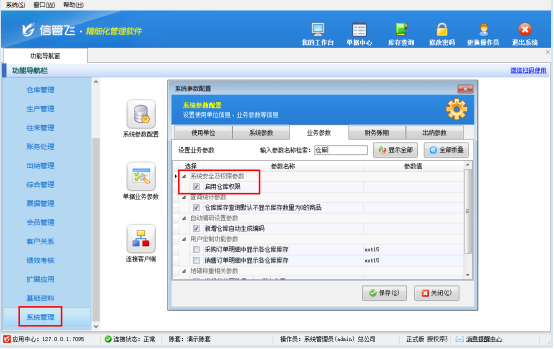 信管飛RMS支持“倉庫權(quán)限”功能,管理員只需在“系統(tǒng)參數(shù)配置”中勾選“啟用倉庫權(quán)限”,即可開啟分級管理模式。該功能簡單易用,無需復(fù)雜操作,輕松滿足企業(yè)對多倉庫、多人員協(xié)同管理的核心需求。