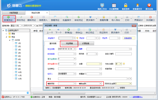 在企業的日常運營中,出納記賬作為財務管理的關鍵環節,其準確性與高效性直接關系到企業資金流的清晰與穩定。今天,就為大家深入剖析信管飛出納記賬軟件在新增憑證時,針對憑證明細和輔助項目所具備的靈活設置功能,助力企業輕松達成精細化財務管理目標。