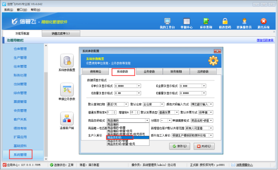 解決此問題需要設置下商品條碼格式匹配,在功能導航窗點擊“系統管理”,打開“系統參數配置”界面,在系統參數中商品條碼格式選擇“商品條形碼”,保存參數配置,如下圖所示: