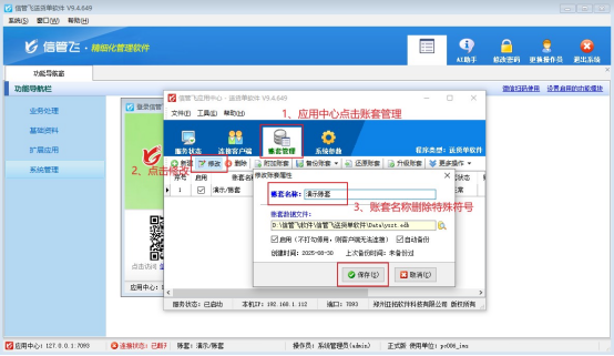 經(jīng)檢查備份賬套失敗的原因是賬套名稱含有特殊字符“/”,處理方法:打開應(yīng)用中心(紅色圖標)-----賬套管理---修改,賬套名稱中符號/刪除,重新備份賬套即可。